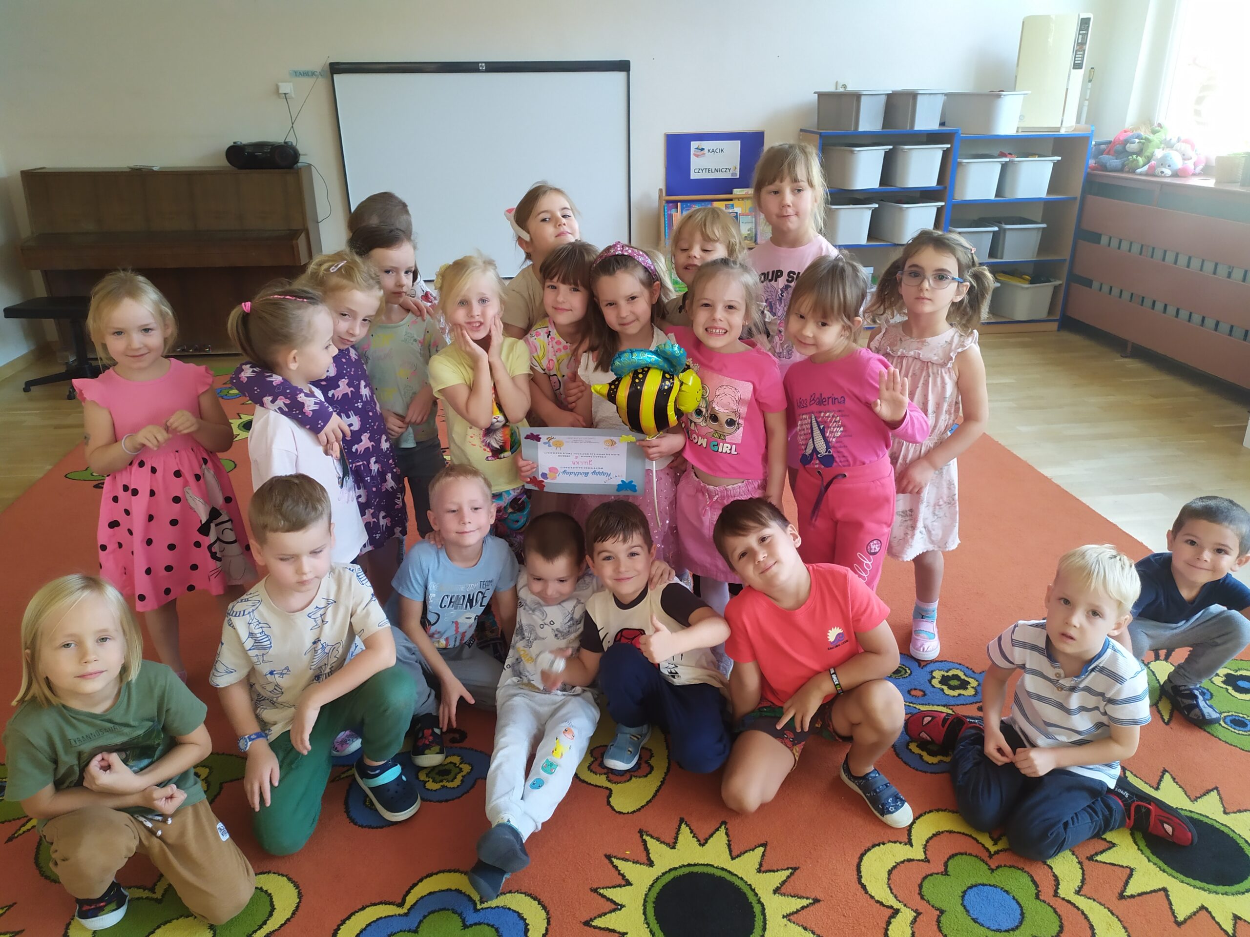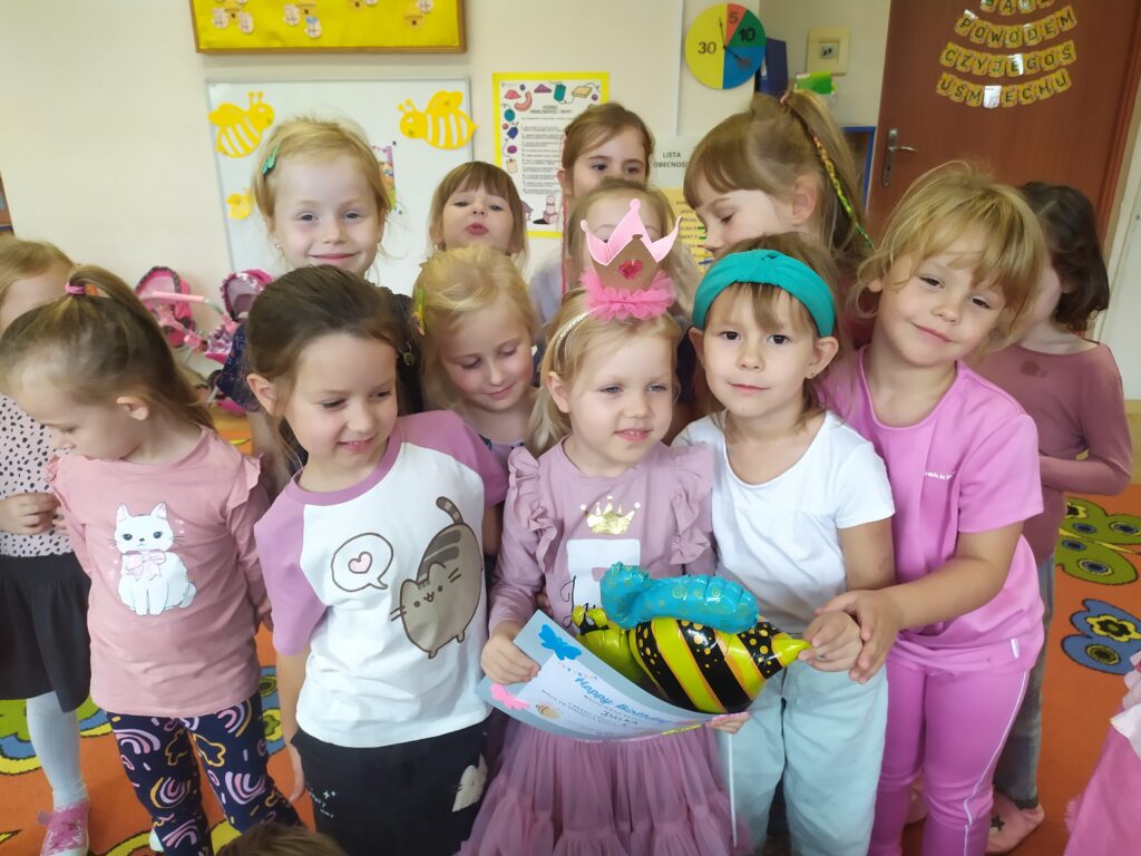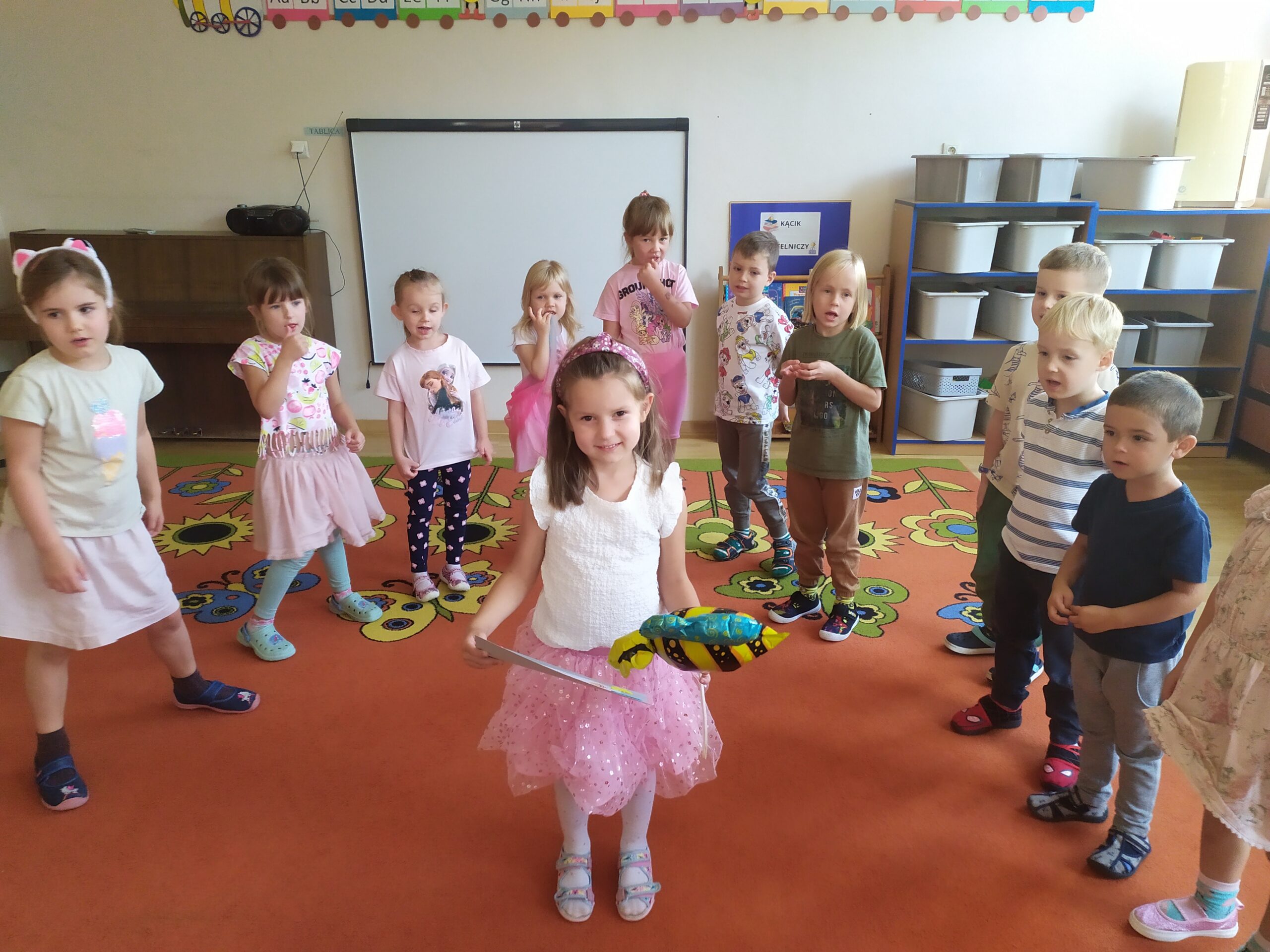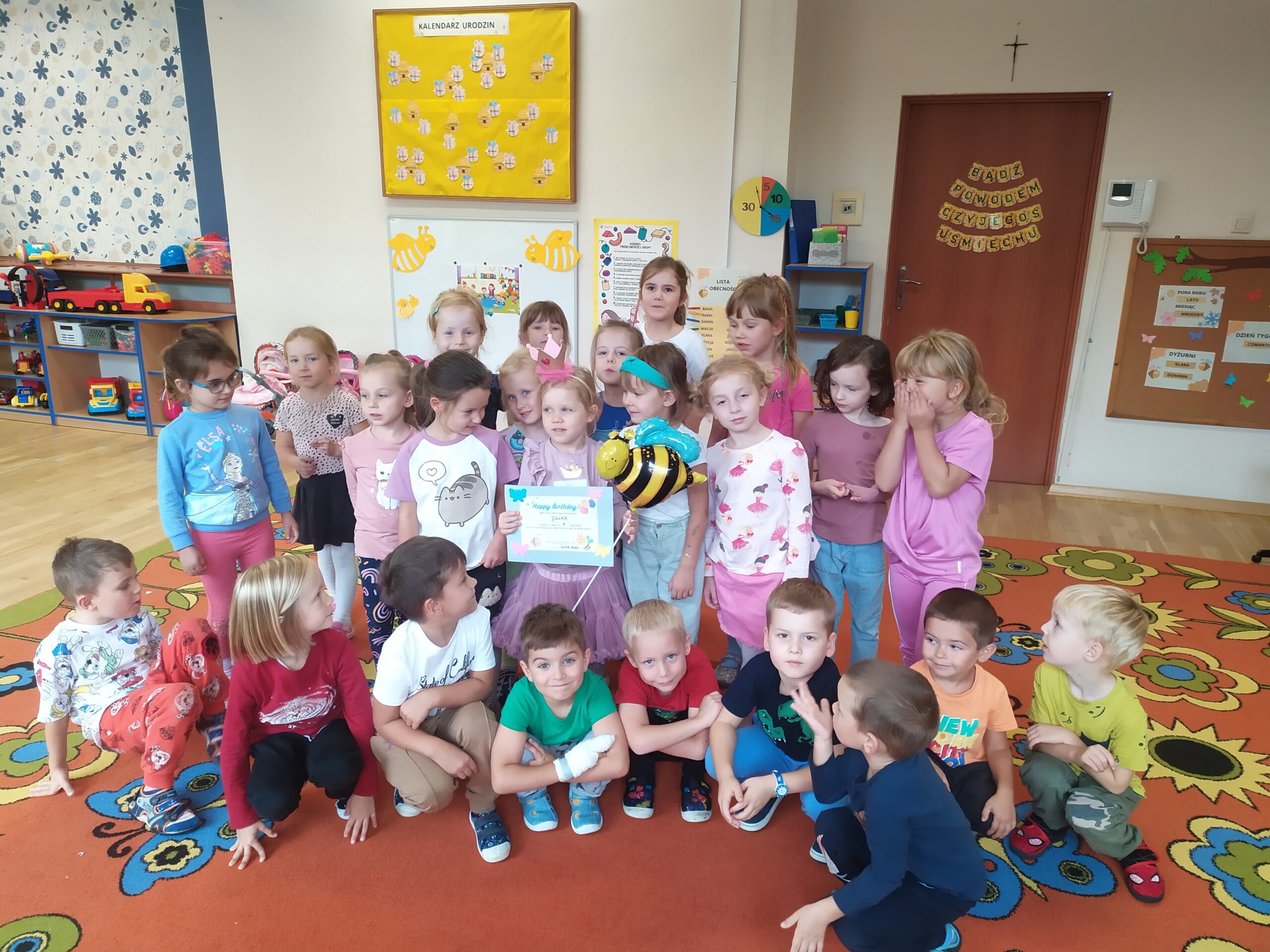 „Pszczółki” to rezolutne 5-latki. Pszczółka jest symbolem pracowitości, dlatego jest bardzo dobrym patronem naszej grupy. My również chcemy być tak zdyscyplinowani i pracowici, jak pszczoły w ulu. W związku z tym chętnie chodzimy do przedszkola i wykonujemy zadania jakie stawiają przed nami nasze „królowe- pszczoły”, czyli Pani Ania i Pani Tereska. Staramy się być coraz bardziej samodzielni oraz skupieni na każdej wykonywanej czynności. W ten sposób rozwijamy różne umiejętności i poszerzamy swoją wiedzę. Lubimy ze sobą być, bawić się, śpiewać, tańczyć, śmiać się, itp., itd