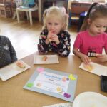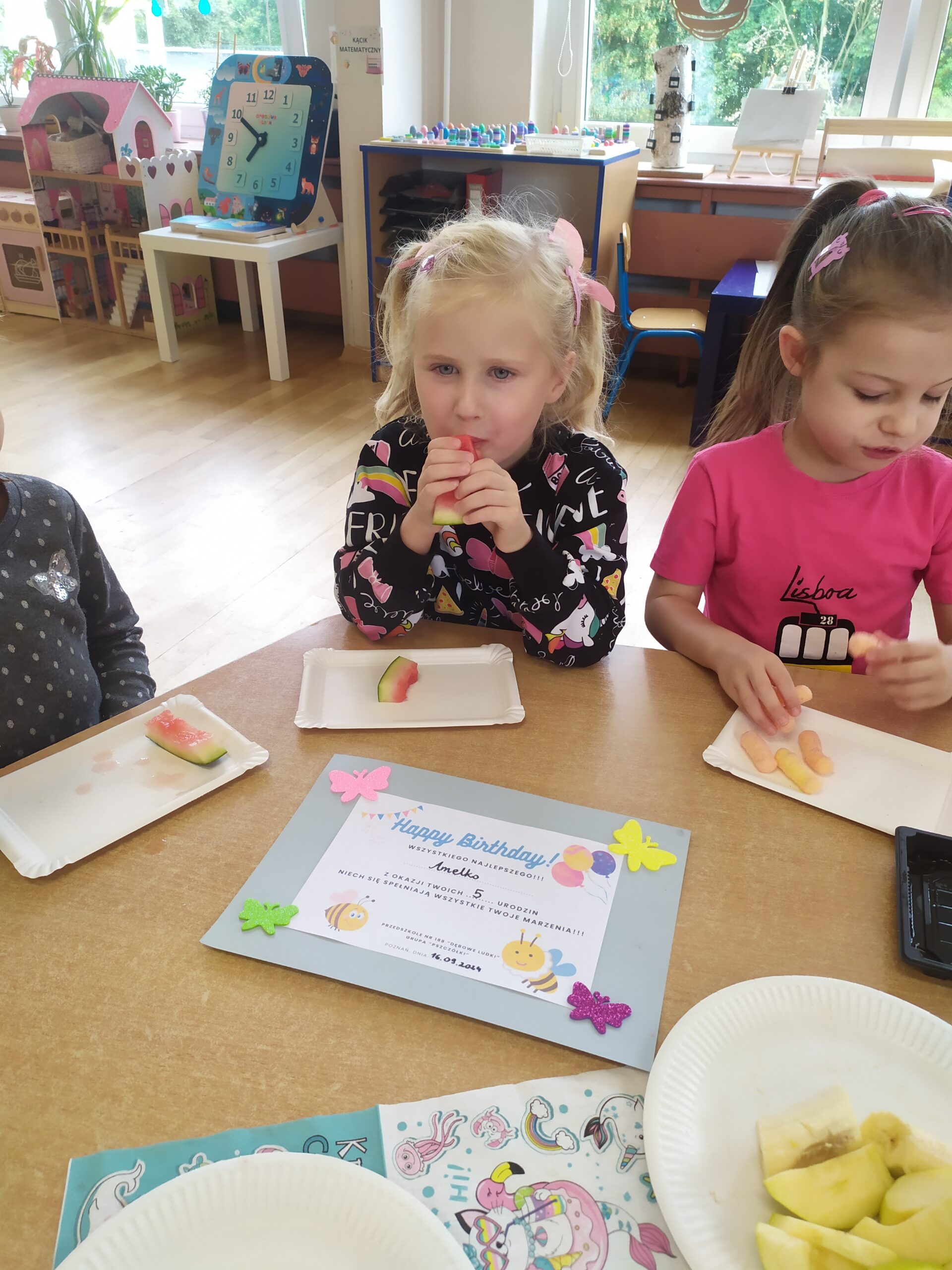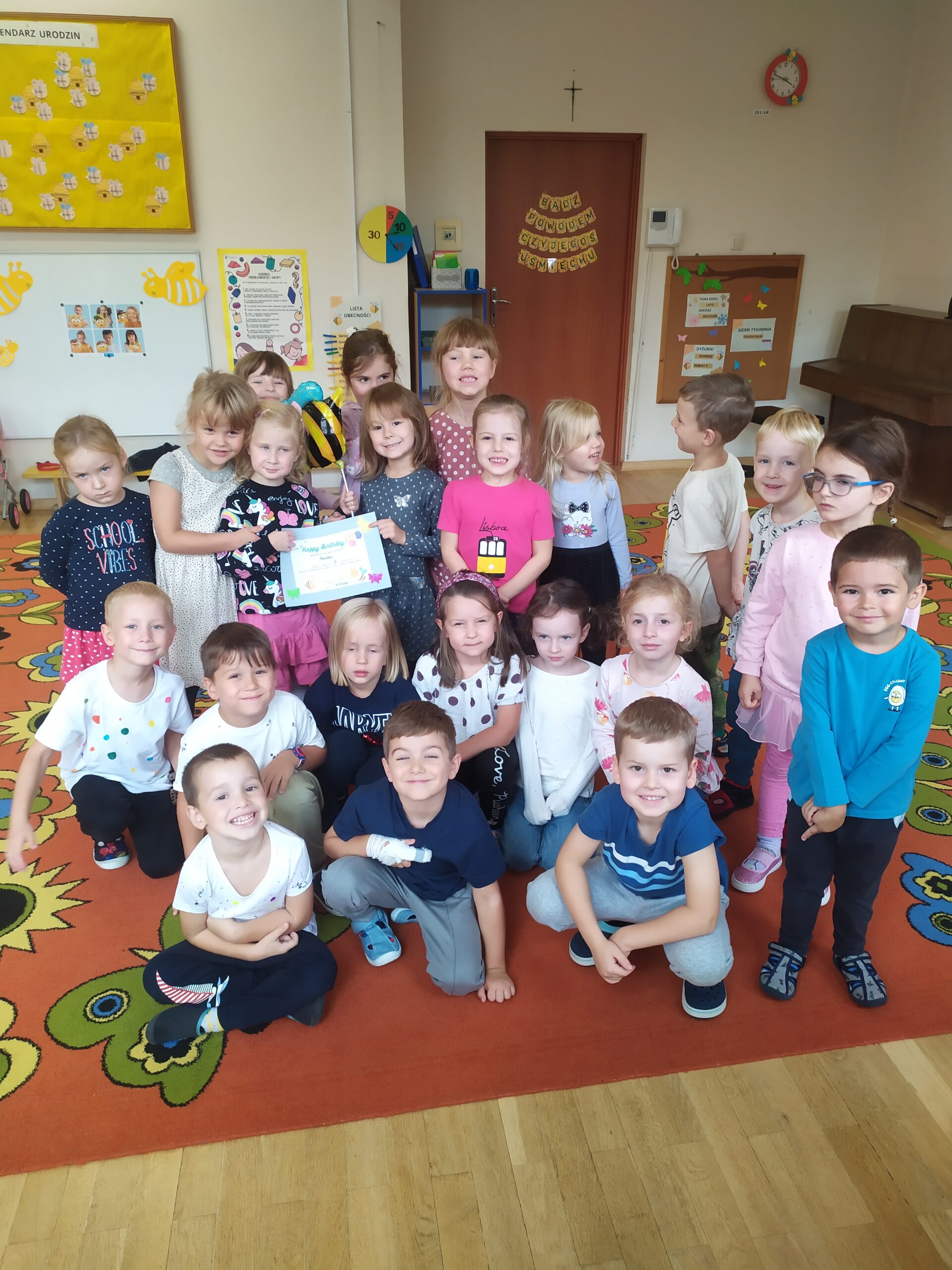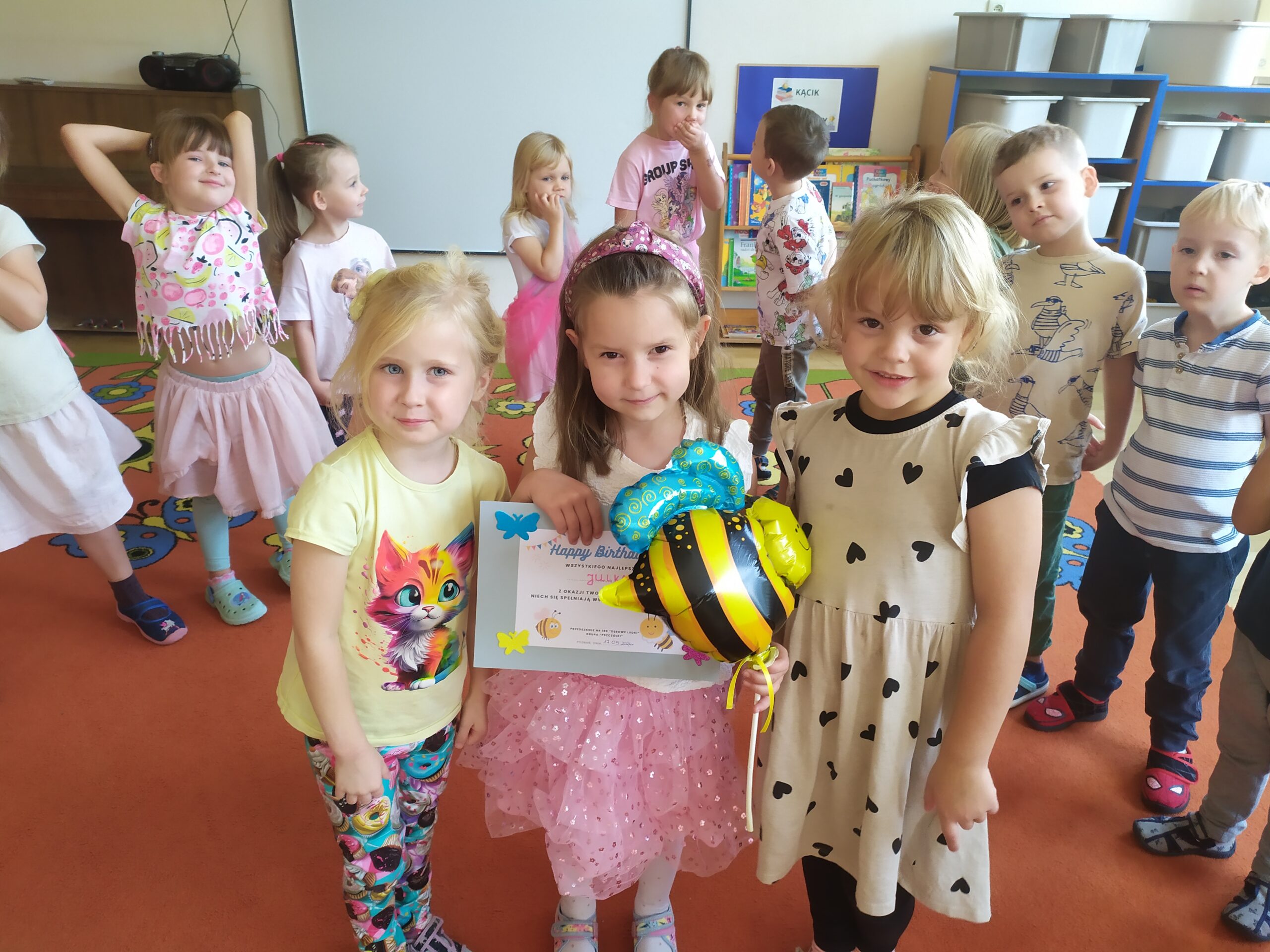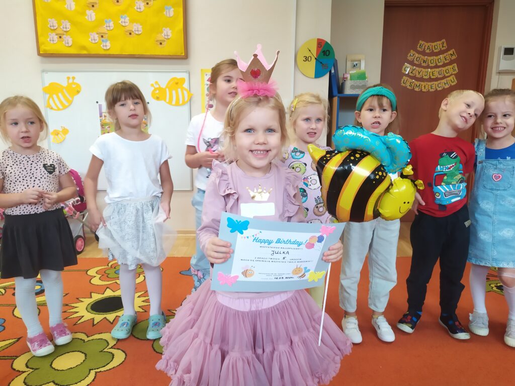 „Pszczółki” to rezolutne 5-latki. Pszczółka jest symbolem pracowitości, dlatego jest bardzo dobrym patronem naszej grupy. My również chcemy być tak zdyscyplinowani i pracowici, jak pszczoły w ulu. W związku z tym chętnie chodzimy do przedszkola i wykonujemy zadania jakie stawiają przed nami nasze „królowe- pszczoły”, czyli Pani Ania i Pani Tereska. Staramy się być coraz bardziej samodzielni oraz skupieni na każdej wykonywanej czynności. W ten sposób rozwijamy różne umiejętności i poszerzamy swoją wiedzę. Lubimy ze sobą być, bawić się, śpiewać, tańczyć, śmiać się, itp., itd