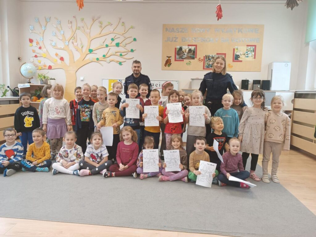 Dziś nasze przedszkole odwiedzili wyjątkowi goście – funkcjonariusze policji. Spotkanie pełne było ciekawych rozmów, praktycznych wskazówek oraz wielu uśmiechów.